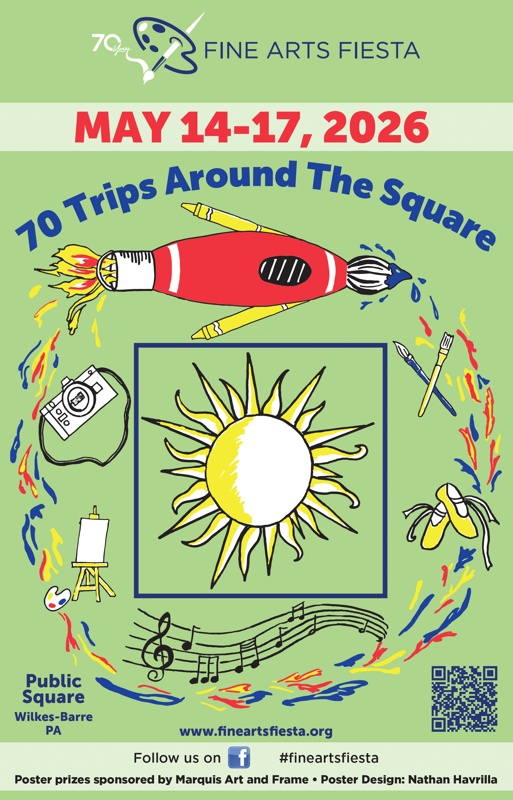 The Board of Directors of the Fine Arts Fiesta cordially welcomes student participation in its 2026 Poster and Program Cover Contest. We are asking you to assist us in selecting the original piece of artwork which will serve as the cover for our 2026 Program Book and our promotional poster. The winning entry may also appear on the 2026 tee shirt. The Board of Directors of the Fine Arts Fiesta gratefully acknowledges the assistance of the member libraries of The Luzerne County Library System in this contest.